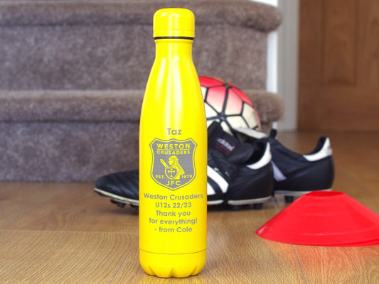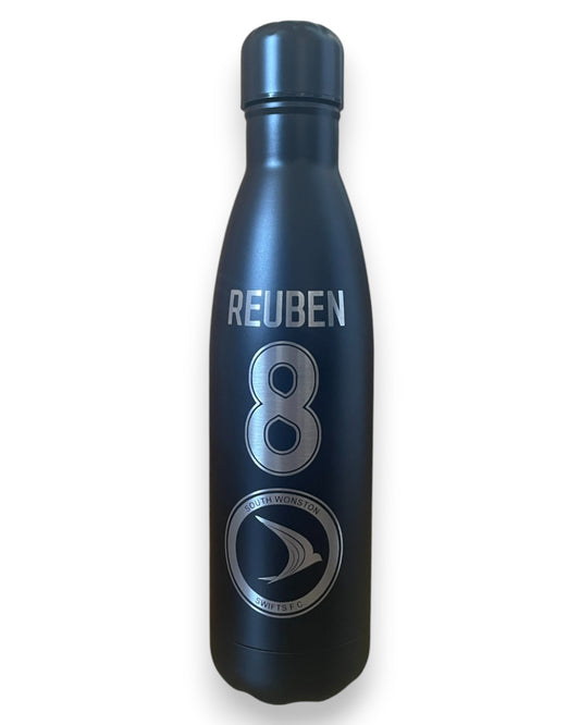 Personalised insulated water bottle with player name and number club crest